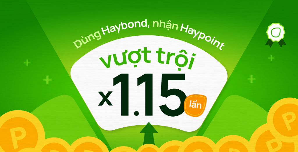 Khi tham gia các sản phẩm Tích lũy HayBond, nếu Nhà đầu tư lựa chọn nhận lợi nhuận quy đổi bằng điểm HayPoint, mức lợi nhuận thực nhận sẽ gấp 115% so với việc nhận lợi nhuận bằng tiền mặt thông thường.