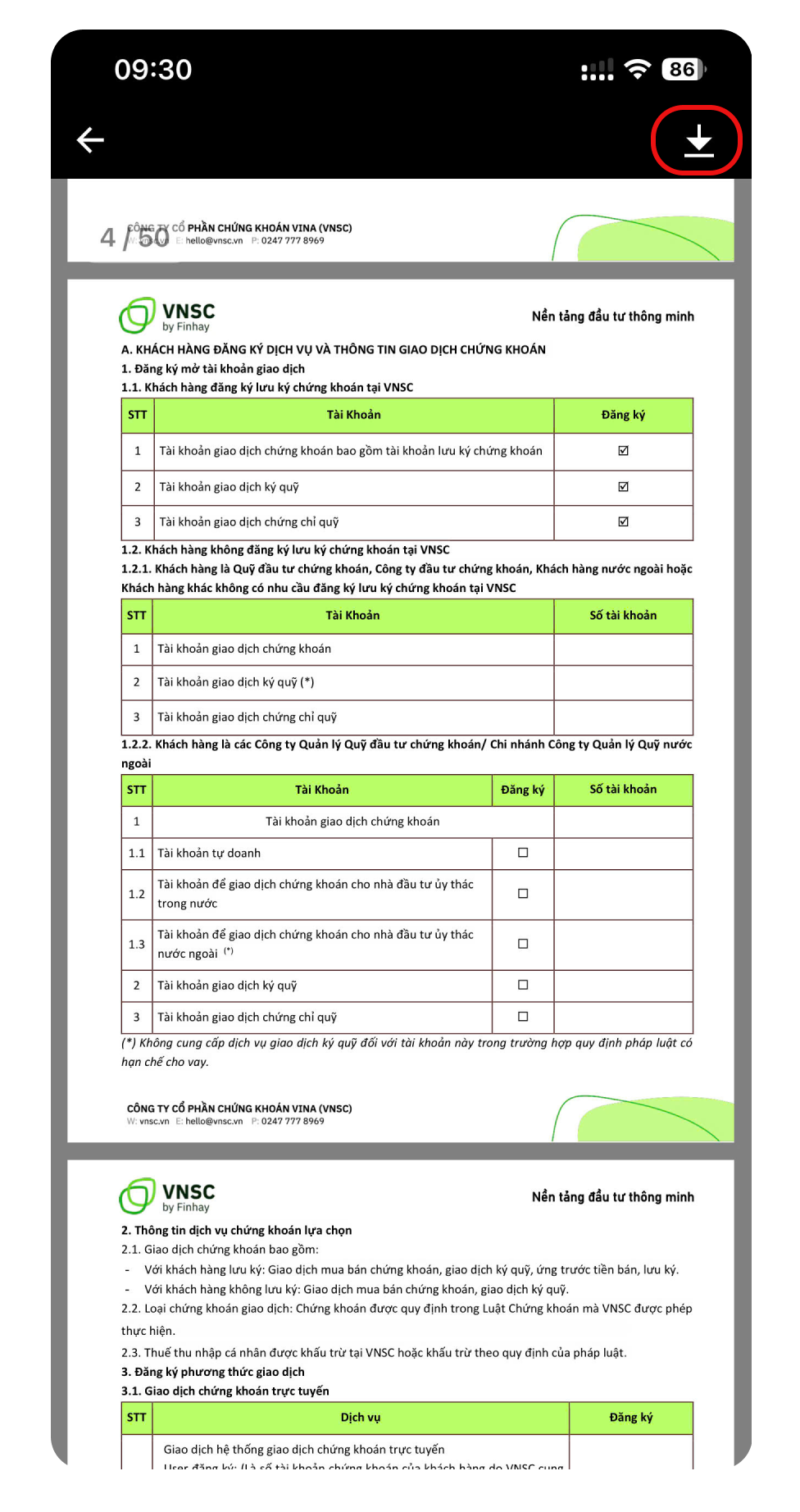 Trong tháng 9, VNSC bổ sung tính năng tải file PDF dành cho người dùng Android, giúp việc lưu trữ và xem lại các tài liệu quan trọng trở nên thuận tiện hơn.